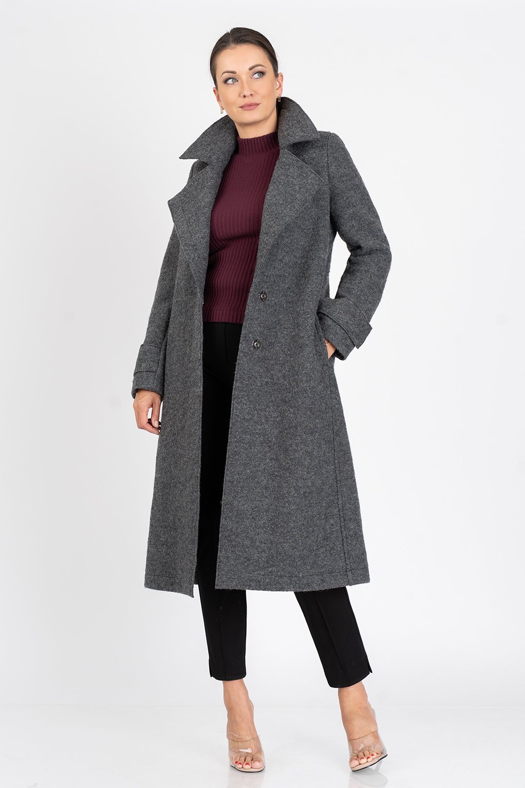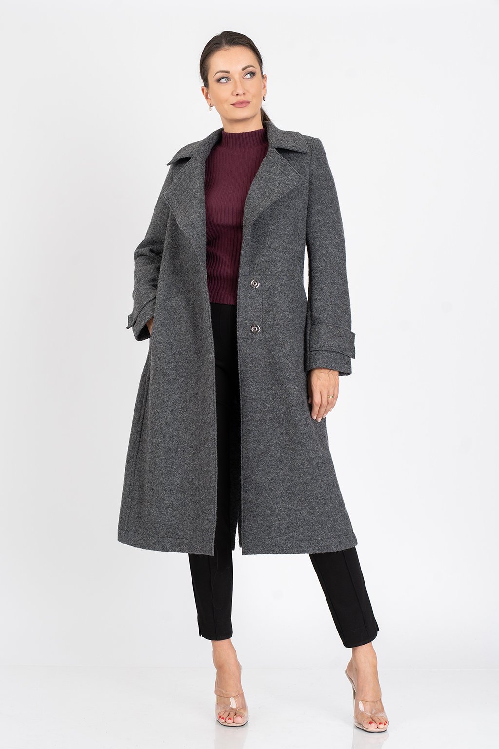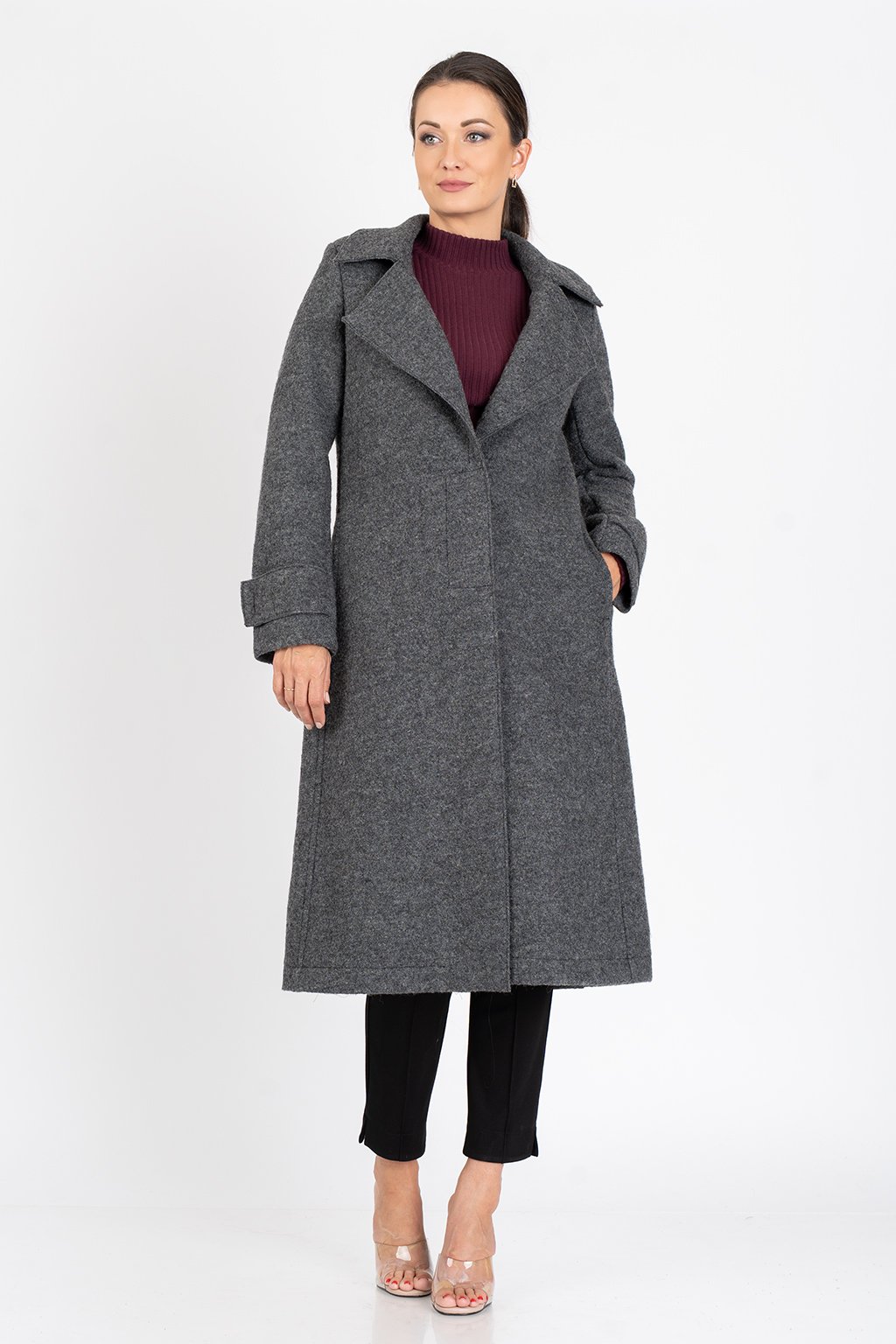 Komfortní  kabát z hřejivé vařené vlny s podšívkou.