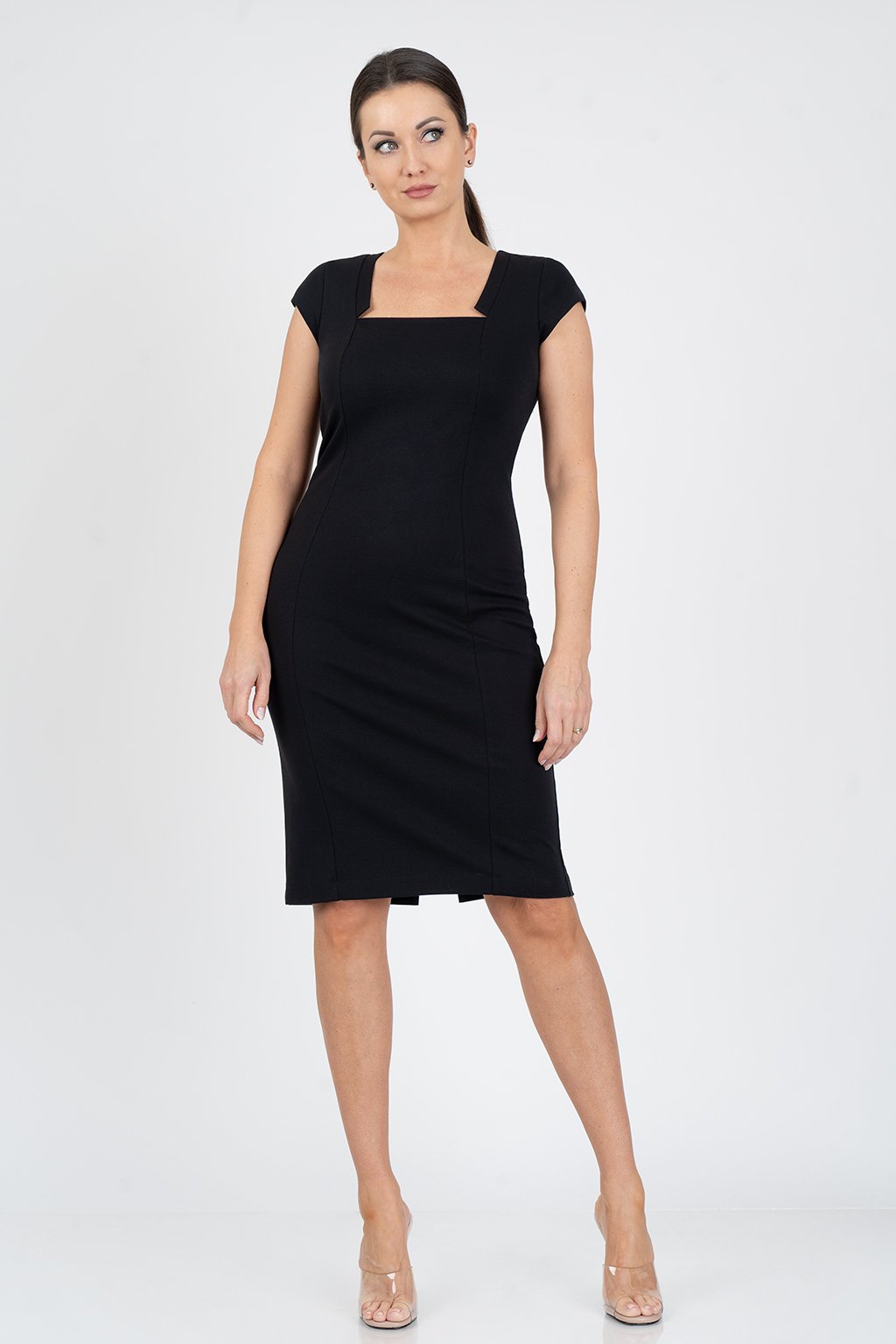 Sofistikované šaty z pružného úpletu. Délka od ramene je cca 106 cm.