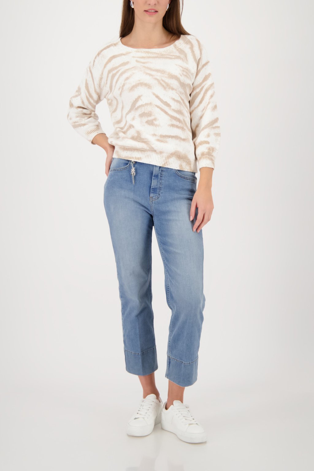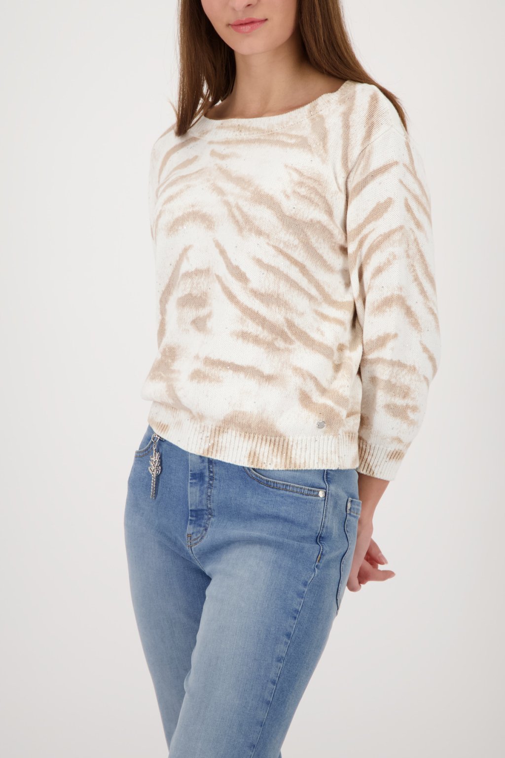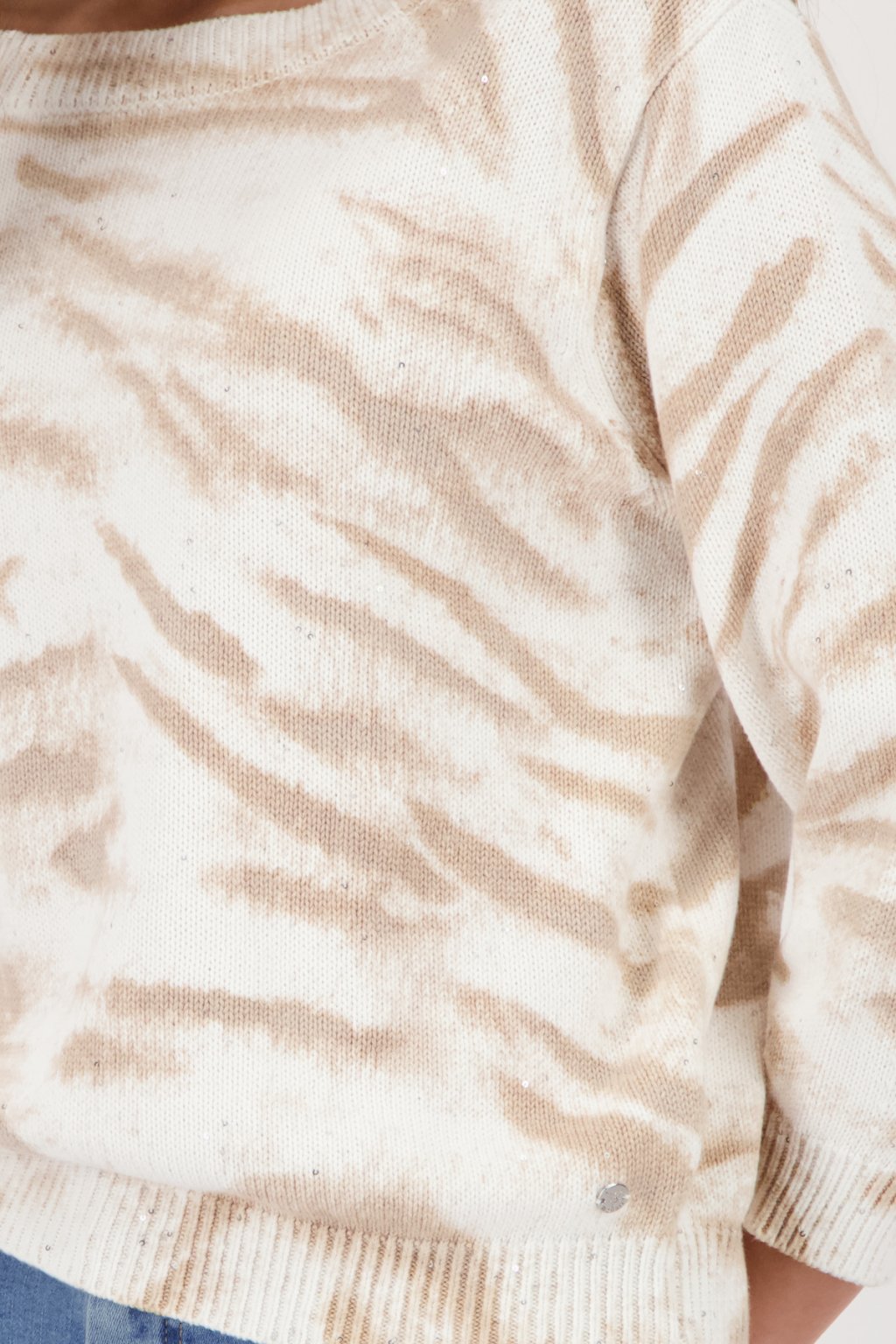 Stylový pletený svetr z vysoce kvalitní bavlny, měkký na omak, s poutavým tygřím vzorem a třpytivými flitry.