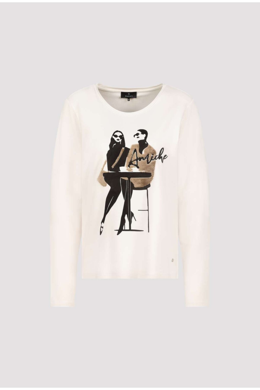 Tento top s dlouhým rukávem kombinuje měkkou viskózu s modalem, atraktivními kožešinovými aplikacemi a okouzlujícím dámským potiskem.