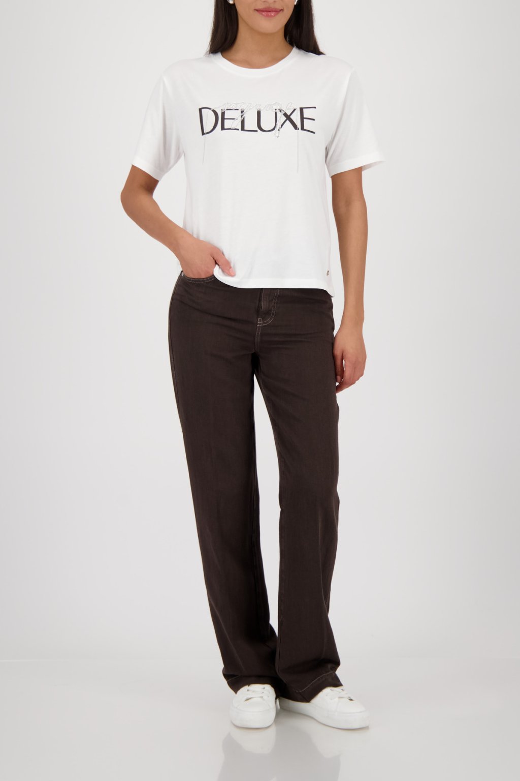 Toto stylové tričko vyrobené z vysoce kvalitní bavlny a modalu okouzlí svým hebkým omakem, třpytivými kamínky a elegantním nápisem.