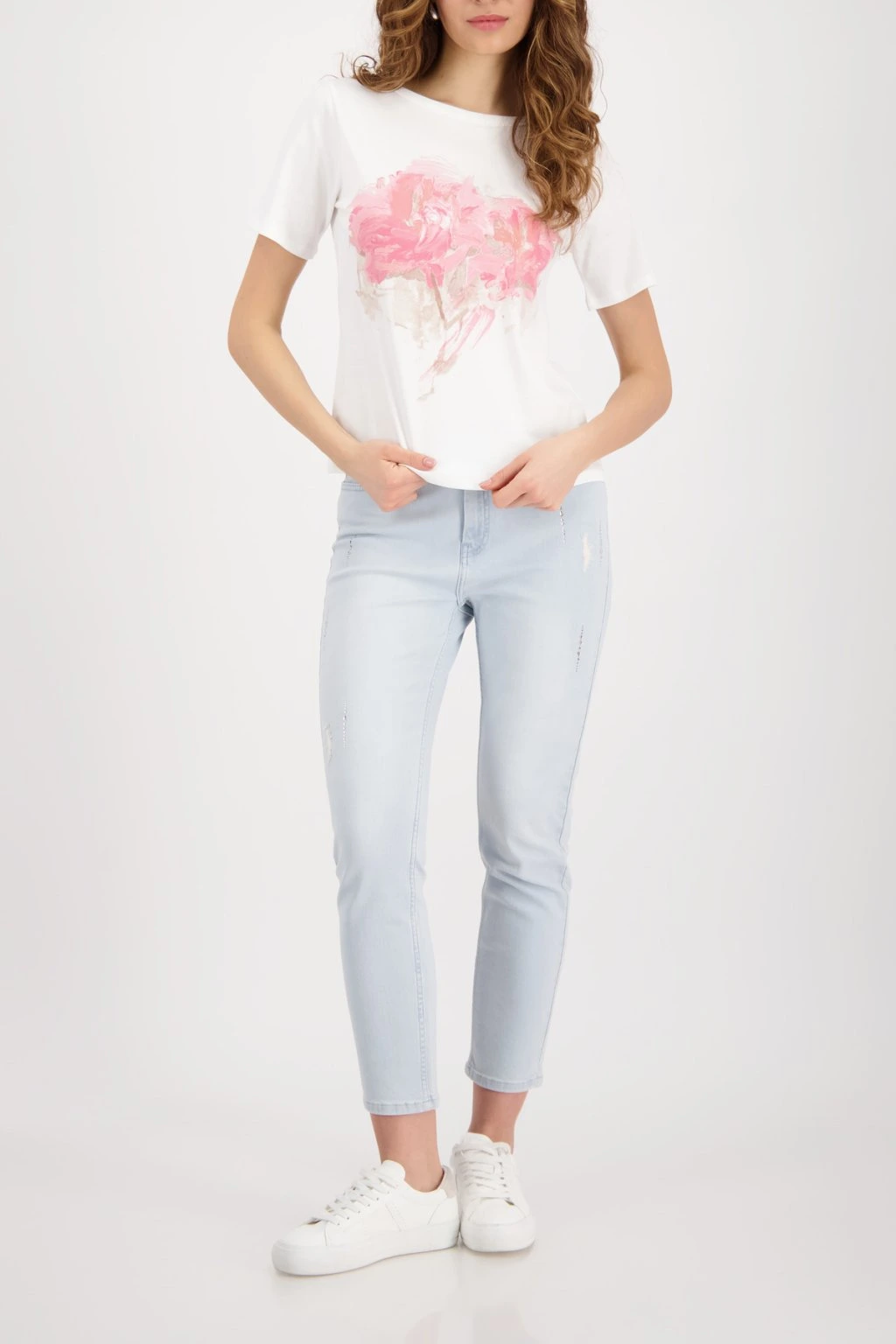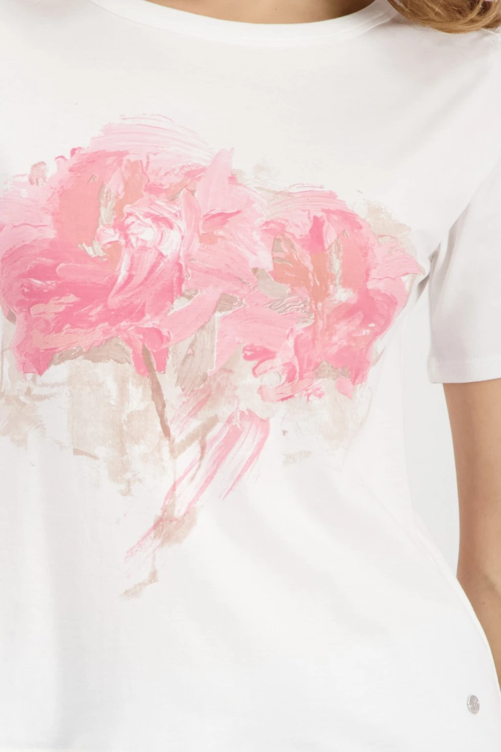 Tento top ze 100% bavlny kombinuje hebký materiál s moderním potiskem rozmazaných květin.